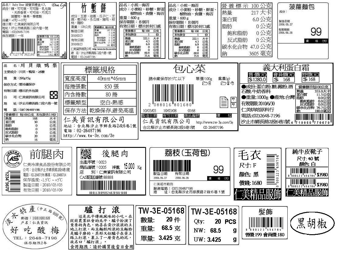 標示系統(包含食品標示 五金工業 紡織工業...等各種標示)